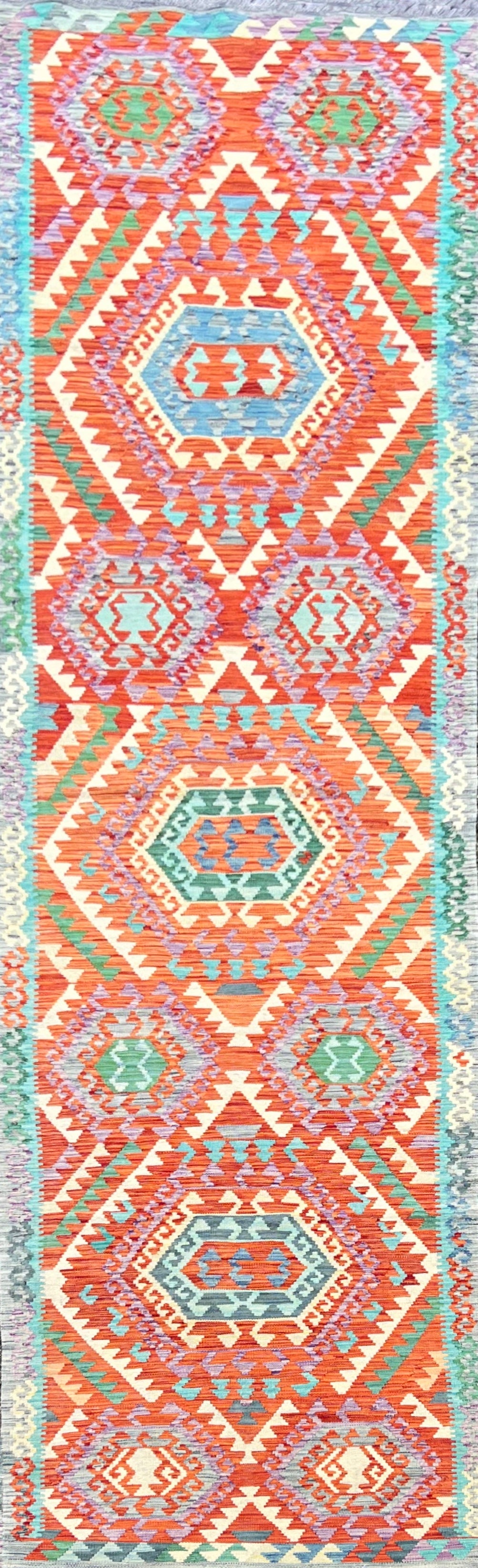 Handgeweven Afghans loper Kelim maat 424 X 85 Cm